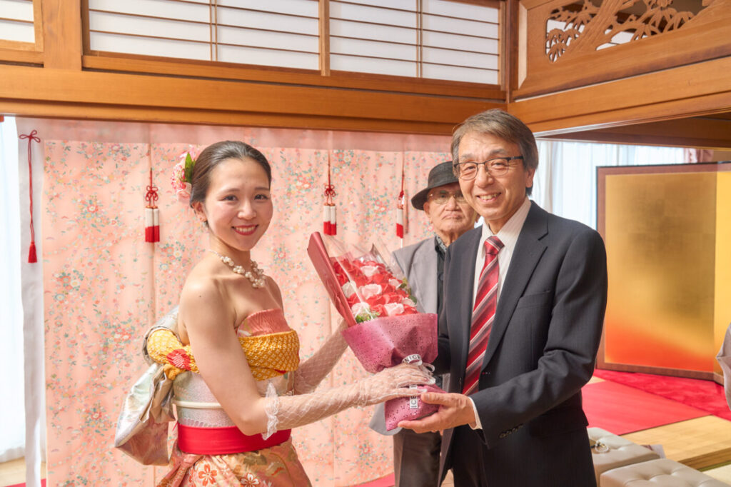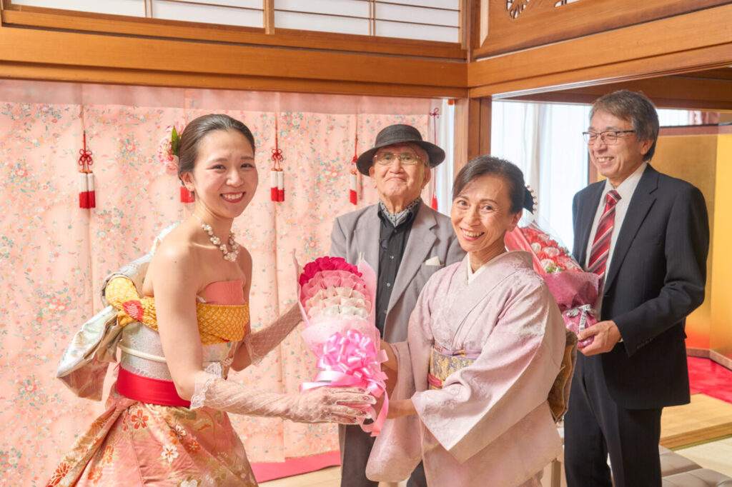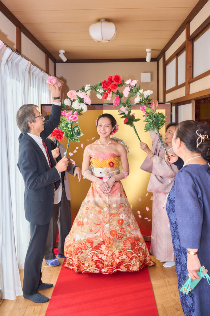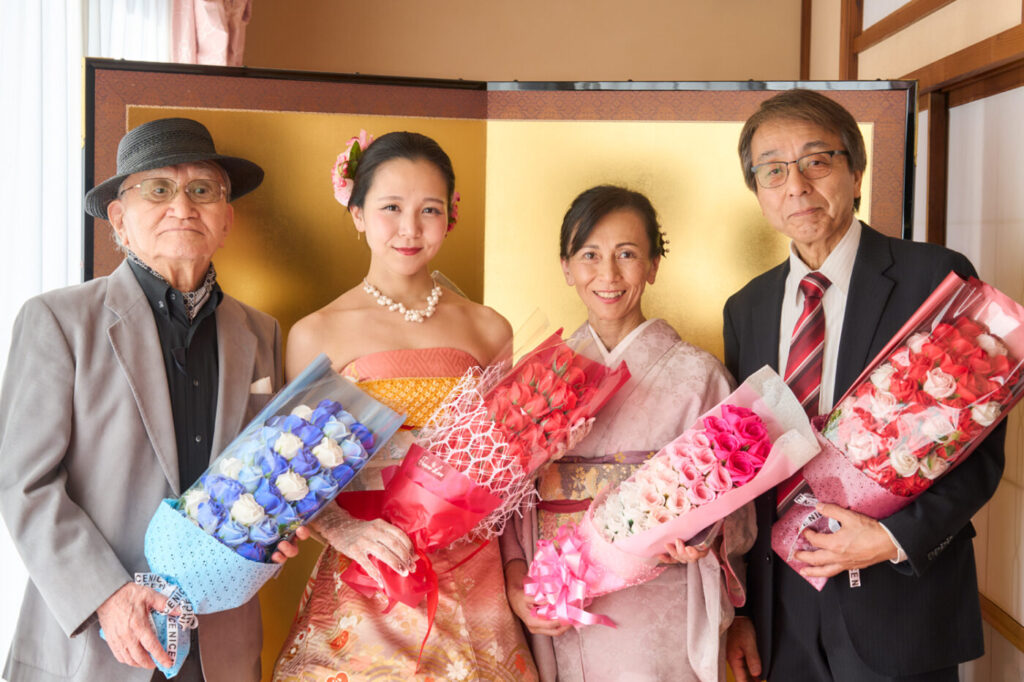 感謝の言葉、開運鏡開き、幼い頃からのスライドショー、花束贈呈、フラワーシャワーなどご家族皆様で楽しんでいただけます。
